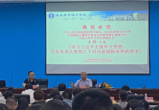 4月7日晚,中华人民共和国前驻委内瑞拉、乌拉圭特命全权大使王珍应邀在学术报告厅作题为《学习习近平外交思想:百年未有大变局之下对当前国际形势的思考》的党史教育讲座。