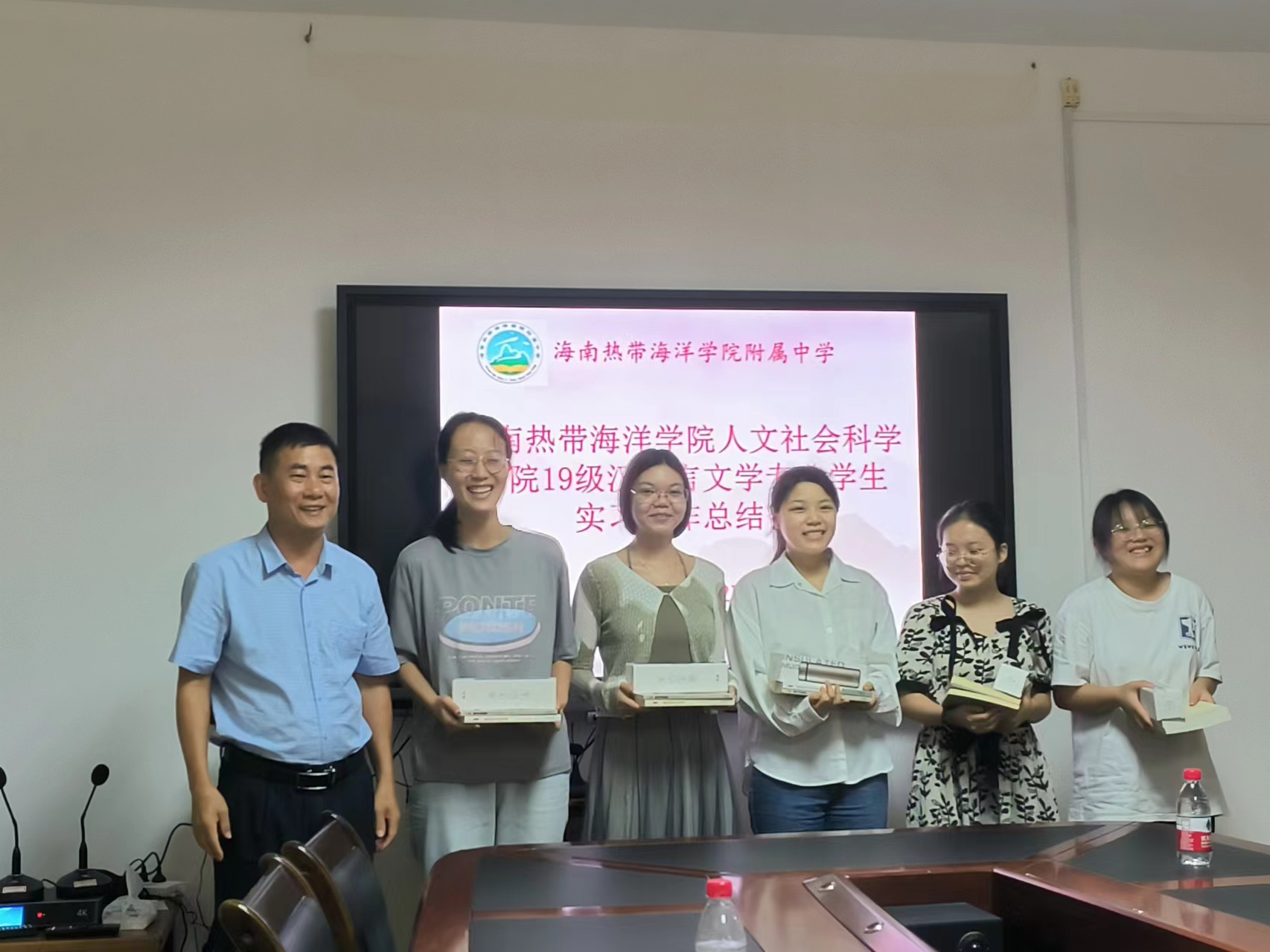 最后,郑书记总结发言并进行了未来展望:在整个实习过程中可以明显看到实习生和指导老师们的成长,这是十分令人欢欣鼓舞的。希望每一位老师都能在以后的教员工涯中以做“四有好老师”为目标,不断增强自己的教学能力。并亲自为5位实习生举行赠书、纪念品。郑书记表示希望在未来能够继续深入和taptap点点的合作,促进双方关系更进一步。