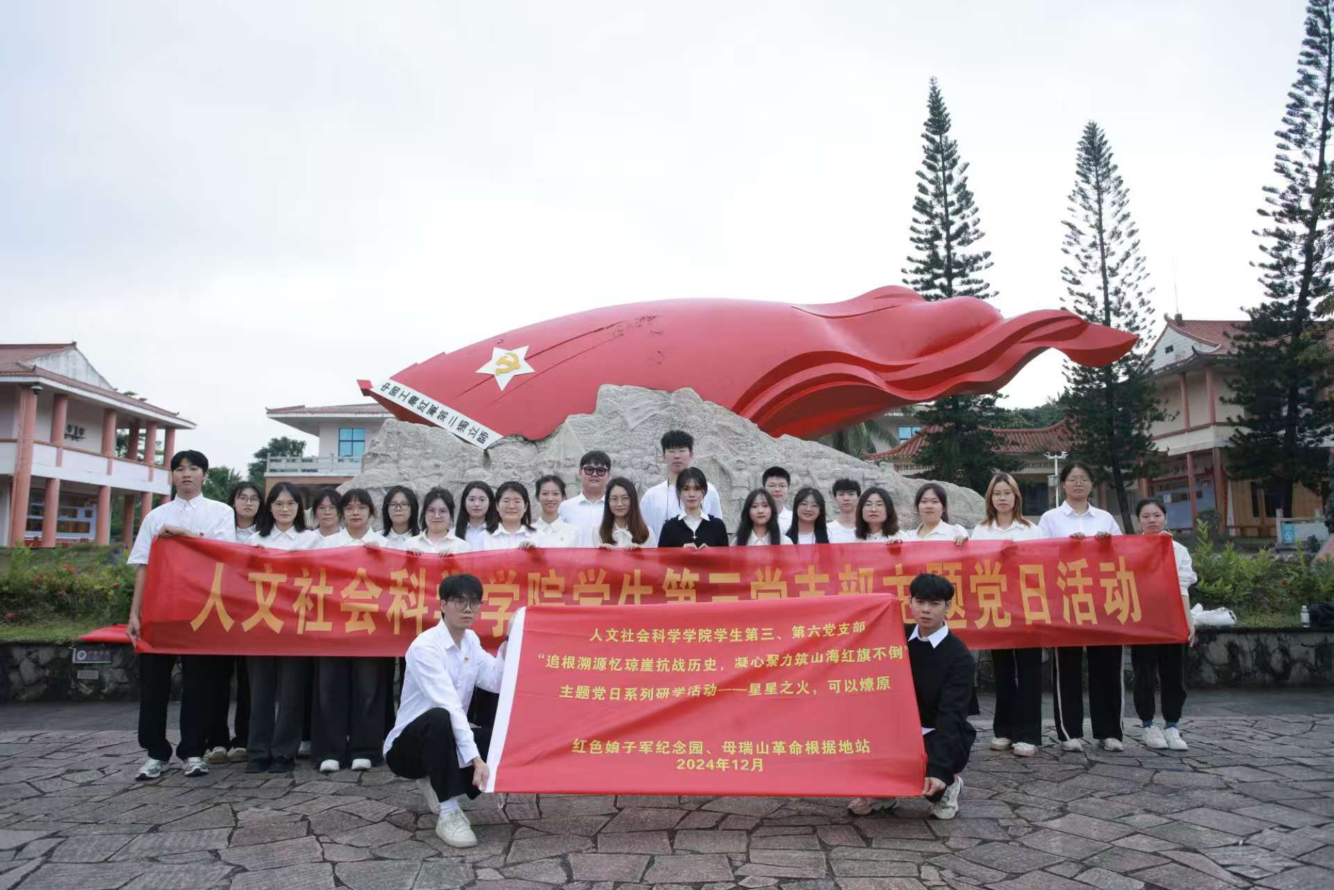 为深入学习贯彻党的二十大精神,加强党员对革命历史的了解,增强党性教育和革命传统教育,铭记琼崖革命光辉历史,传承母瑞山精神。12月7日至12月9日,taptap点点员工第三、第六党支部前往红色娘子军纪念园、母瑞山革命根据地站,开展以“追根溯源忆琼崖抗战历史,凝心聚力筑山海红旗不倒”为主题的党日研学活动。共有教师党员2名,员工党员11名,入党积极分子16名参与本次活动。