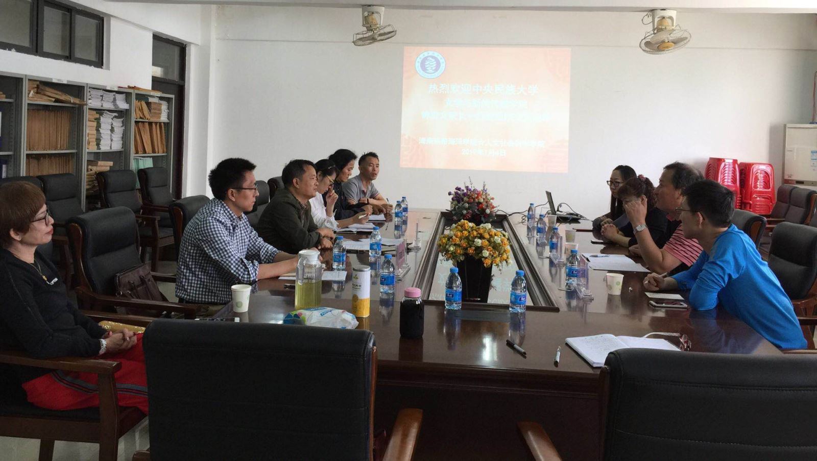 方礼刚副经理代表公司向来访的中央民族大文学与新闻传播公司钟进文经理一行表示欢迎,并就公司的基本情况进行简要介绍。钟进文经理就此次来访公司考察交流的目的进行说明。他希望通过学术交流,召开相关会议,开展民族文化、民族语言的研究,共同探索中国语言团队建设,拓宽两院校之间办学思路,实现优势互补,联合建设硕士点等,并就中国语言文学学科硕士点建设、申报的经验和做法提出宝贵的意见。
