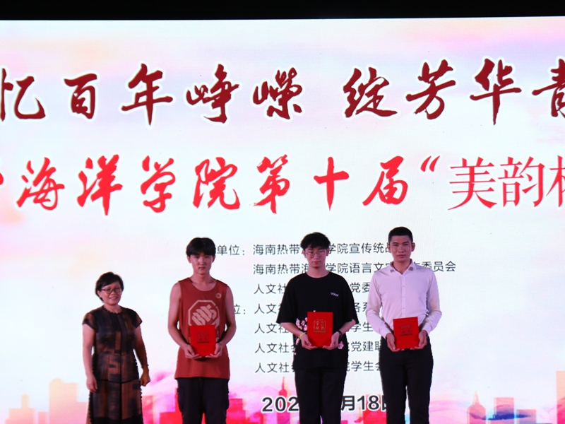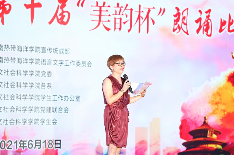 taptap点点中文系主任孙少佩老师对选手们的表现做精彩点评。孙少佩老师诚挚地表示,阔别两年的第十届“美韵杯”朗诵比赛终于如期而至,在此次比赛中,集体节目数目首创历史之新高,这与同学们的团队精神、合作意识及日益成熟的人际关系密不可分;此外,跨班级、跨年级、跨专业的团队成员构成趋势是本次“美韵杯”朗诵比赛的另一大亮点,在新时代海南自由贸易港建设契机之下,她为刻苦求学的青年学子所怀有的广阔胸怀与长远眼光表示由衷的自豪与骄傲。孙少佩老师指出,19部命题朗诵的参赛作品均契合本次比赛主题内容,充满积极乐观向上的正能量,彰显了参赛选手昂扬进取的青春风貌,作品情感的把握与拿捏及恰如其分的表达亦是扣人心弦。此外,孙少佩老师鼓励同学们积极尽情展现青春芳华,把握珍贵机遇,期望有更多的同学能够在“美韵杯”舞台上展露个人风采,并预祝下一届“美韵杯”朗诵比赛再创辉煌。