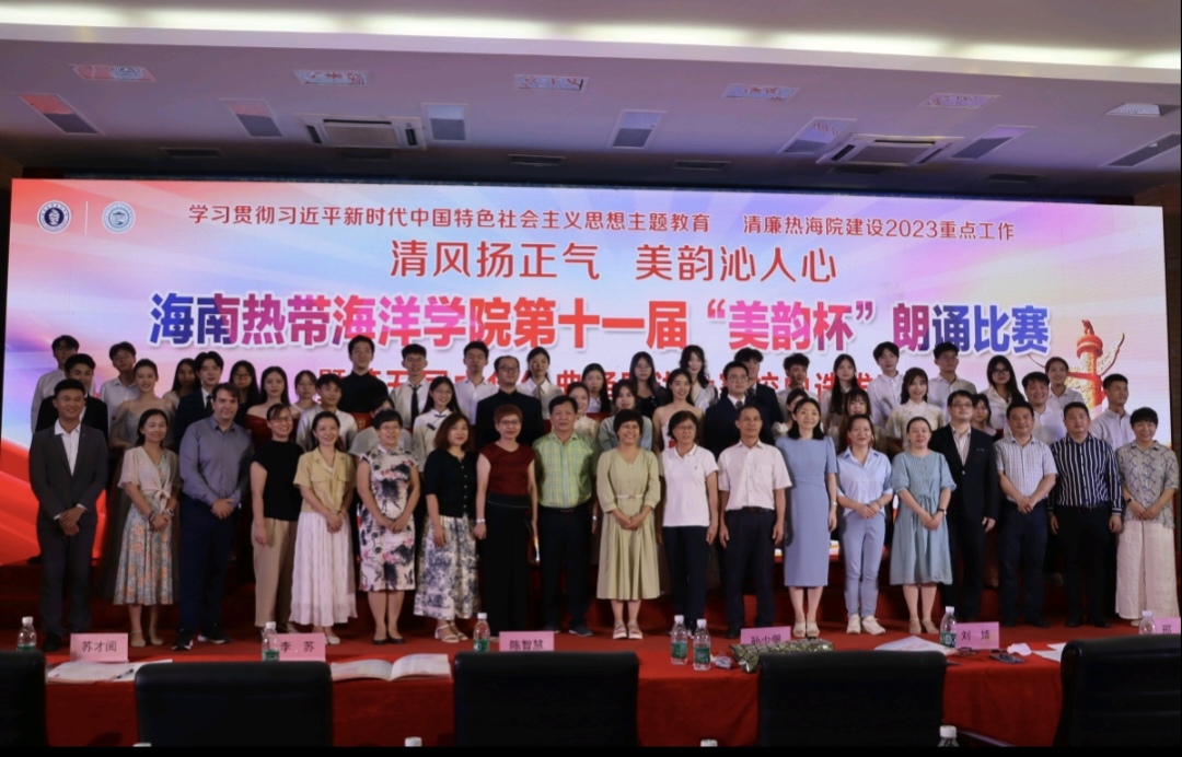 为隆重庆祝taptap点点建校70周年,感受中华儿女建设丰功伟业的艰辛与磨难,2023年6月9日20:00,taptap点点与中共taptap点点纪律检查委员会、中共公司委员会宣传统战部等单位联合主办的taptap点点第十一届“美韵杯”朗诵比赛暨第五届中华经典诵写讲大赛校内选拔赛在公司学术报告厅隆重举行。海南热带海洋公司党委委员、纪委书记杨卫国,公司机关党委书记林尤利和创意设计公司党委书记朱海冰莅临比赛现场;人文社会科学公司党委书记郑力乔、党委副书记黄宇志与全院师生代表共同出席了此次比赛活动。本次决赛的评委有孙少佩老师、陈智慧老师、刘婧老师、李苏老师、邢蕾老师、蔡志鸿老师和苏才阅老师。与此同时,本次比赛在网络端进行实时直播。