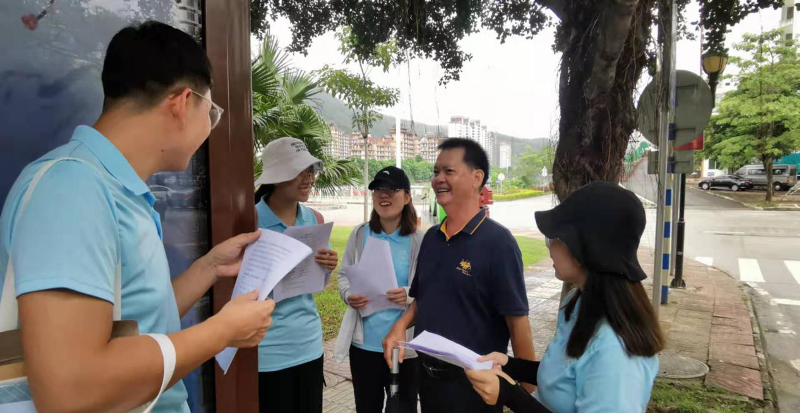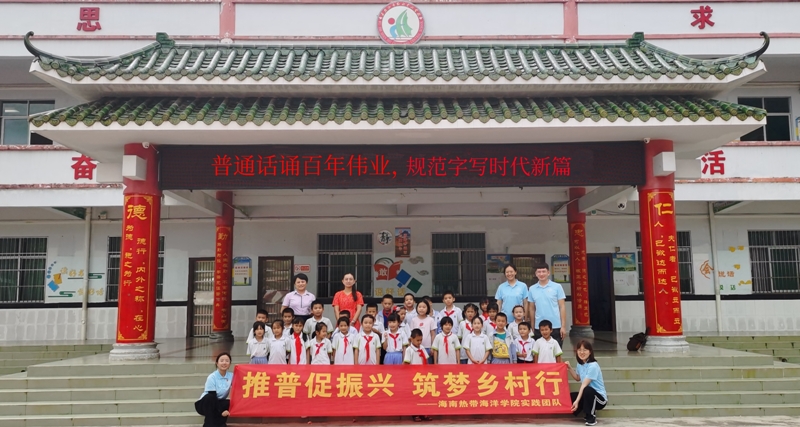 调查当地普通话使用情况是此次实践活动的基础环节。9月14日,推普实践实践团队沿着五指山三月三大道发放调查问卷,了解当地居民对于普通话的使用情况。随后推普团队在畅好乡草办村村委会的帮助下,开展实地考察、入户调研活动。实践过程中,团队成员了解到村民全部是黎族人,普遍使用黎语交流,但谈话中他们表示十分认同并且支持普通话的推广,认为普通话和黎语并不冲突,反而能促进民族语言的相互学习。随着社会主义现代化强国建设全面推进,国家通用语言文字对推动高质量发展、区域协调发展和促进人的全面发展的作用愈发凸显。但村民们都是通过在外务工,与人交流的方式学习的普通话,没有经过系统的学习,需要当地大力推行普通话教学,营造规范普通话的学习氛围。学习和使用国家通用语言文字,有利于扩展交际范围,有利于提升学习能力、提高劳动技能和就业能力,有利于获取最新的科学文化知识和各方面信息,使村民协力创造幸福美好生活。