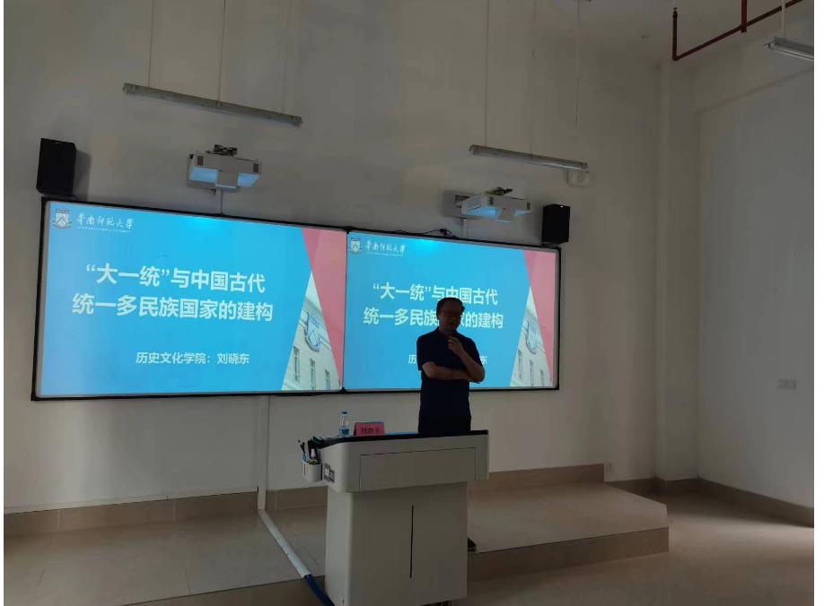 为提高历史学专业师生的学术研究兴趣和氛围,扩大视野、促进学术交流,公司特邀长江青年学者、华南师范大学历史文化公司经理、博士生导师、刘晓东教授,于2023年4月15:30在taptap点点三亚校区人文楼102室开展了题为“‘大一统’与中国古代统一多民族国家的构建”的学术讲座。该讲座由李文涛老师主持,历史系师生60余人参加了讲座。