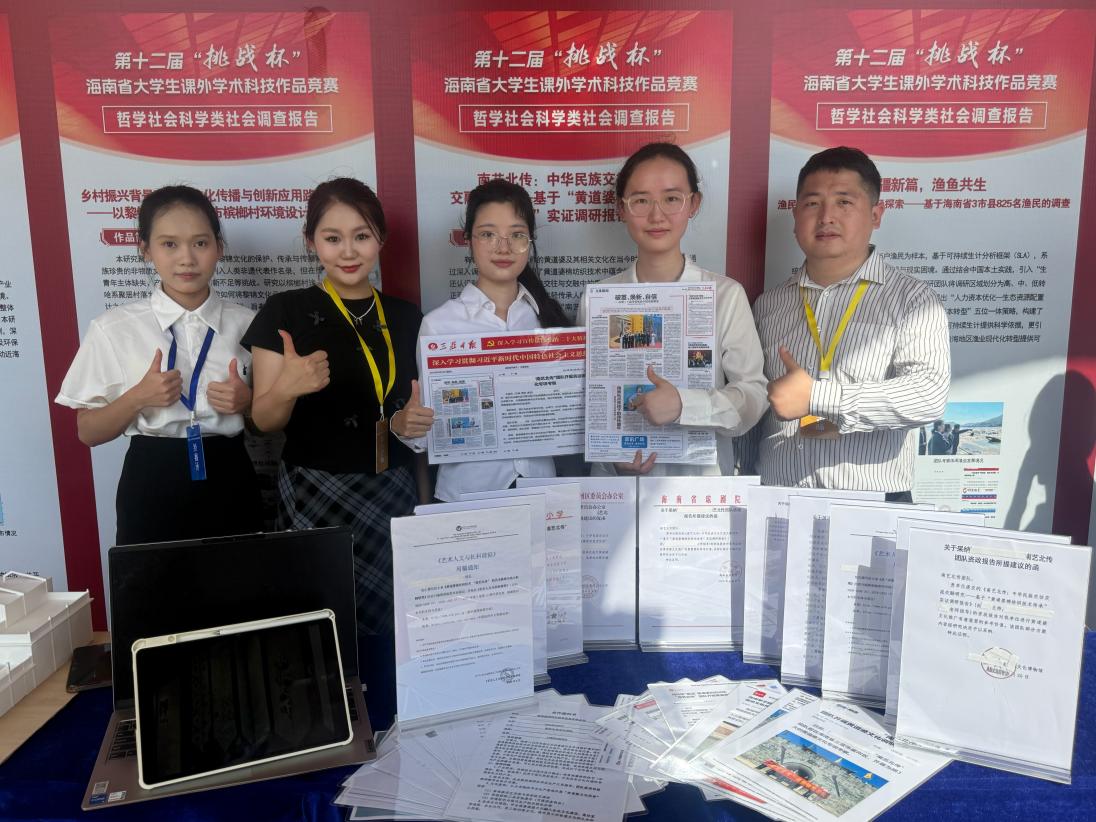 6月9日—6月11日,第十二届“挑战杯”海南省老员工课外学术科技作品竞赛及颁奖典礼在海南大学举行。由丁金金、李洋、郑力乔三位老师指导,员工王妍、贺玺瑜、刘娜雅、景悦、任芳、汲坤屿组成的“南艺北传”团队作品《南艺北传:中华民族交往交流交融研究——基于黄道婆棉纺织技术传承实证调查报告》荣获海南省第十二届“挑战杯”竞赛特等奖;由丁金金、温淑窈、黄明智三位老师指导,员工代长粱、杜硕滢、汲坤屿、袁胡贝雅组成的“琼韵兴乡”团队作品《乡村振兴背景下海南戏剧(琼剧)公共文化空间的社会功能转型社会调查报告》荣获海南省第十二届“挑战杯”竞赛一等奖!