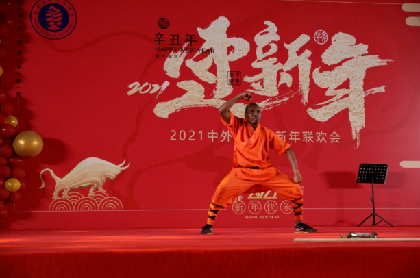 同月,我参加了公司举办的2021中外师生迎新年联欢会。2021年元旦,我参加了研究生元旦联欢晚会。我代表职工发言,为现场师生表演了少林功夫和唱歌。