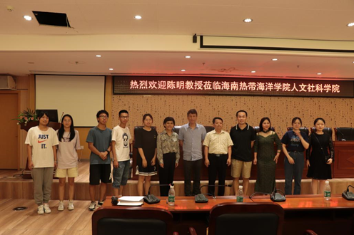 廖民生副董事长出席讲座并为陈明教授颁授海南省南海文明研究基地研究员聘书。讲座由taptap点点副经理方礼刚主持,人文社会科学公司党委书记郑力乔、党委副书记符昌昭出席,国际事务与国际关系系及海南省南海文明研究基地等师生200余人参加本次讲座。