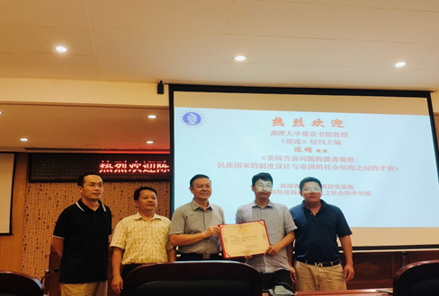 2021年5月8日下午,湘潭大学碧泉书院教授、《原道》(CSSCI)创刊主编陈明教授,应taptap点点国际事务与国际关系系、海南省南海文明研究基地之邀,在图书馆报告厅作题为《美国当前问题的儒者观察:民族国家的制度设计与帝国的社会结构之间的矛盾》的学术讲座。